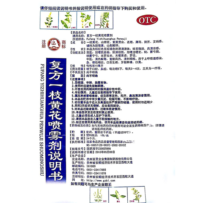 百灵鸟 Клык клык Yilu Yellow Blossom Spray 15 мл перорального перора