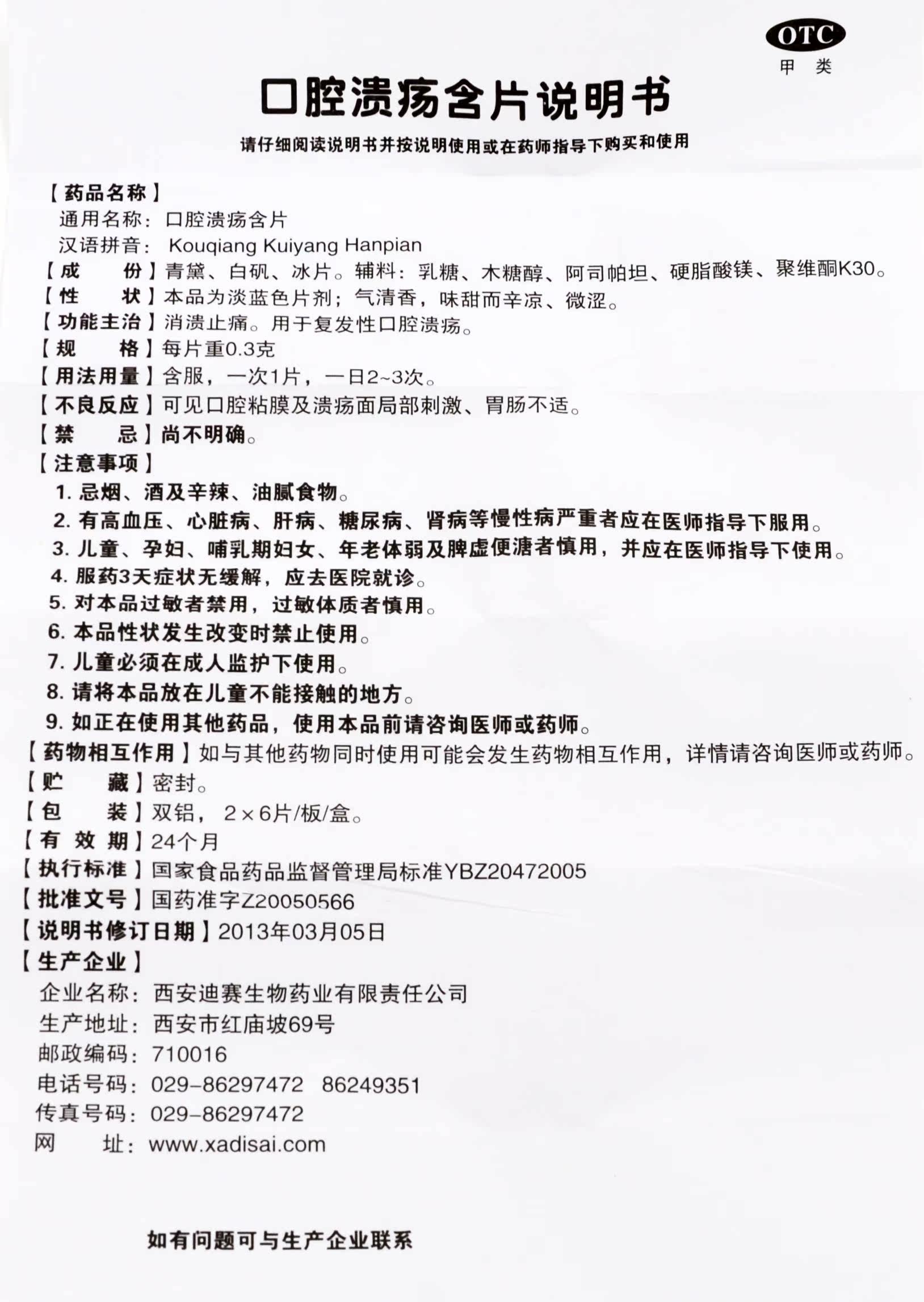迪赛蓝精灵 Язва полости рта содержит 0,3 г*12 таблеток/ящик для анти -инфляционной боли рецидив пероральной язвы GD