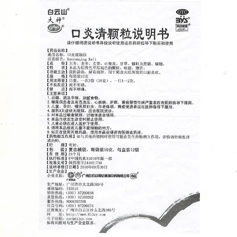 白云山 Пероральные воспаления частицы 10 г*10 мешков для воспаления перора