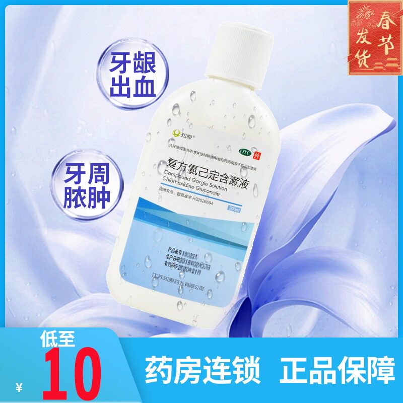 [包邮知原复方氯己定含漱液300ml牙龈出血发炎口腔溃疡脓肿漱口]