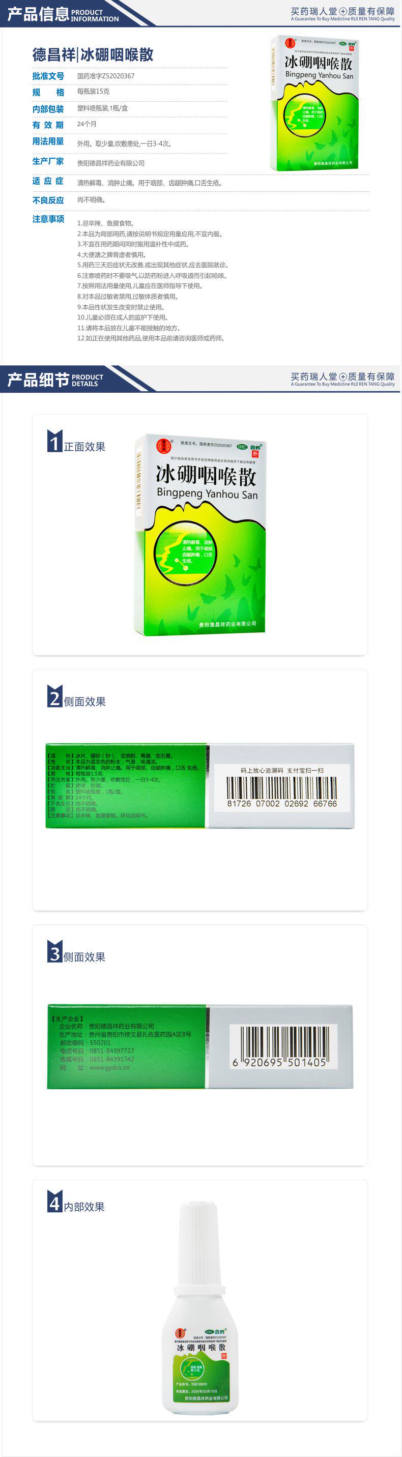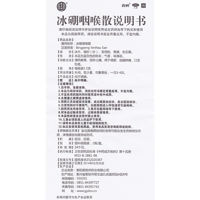 德昌祥 Ледяной бор рассеянный 1,5 г Очистки тепла, детоксикация, отеки, боль, облегчение боли, боль, десны, десны, боли набухания, болезненный язык