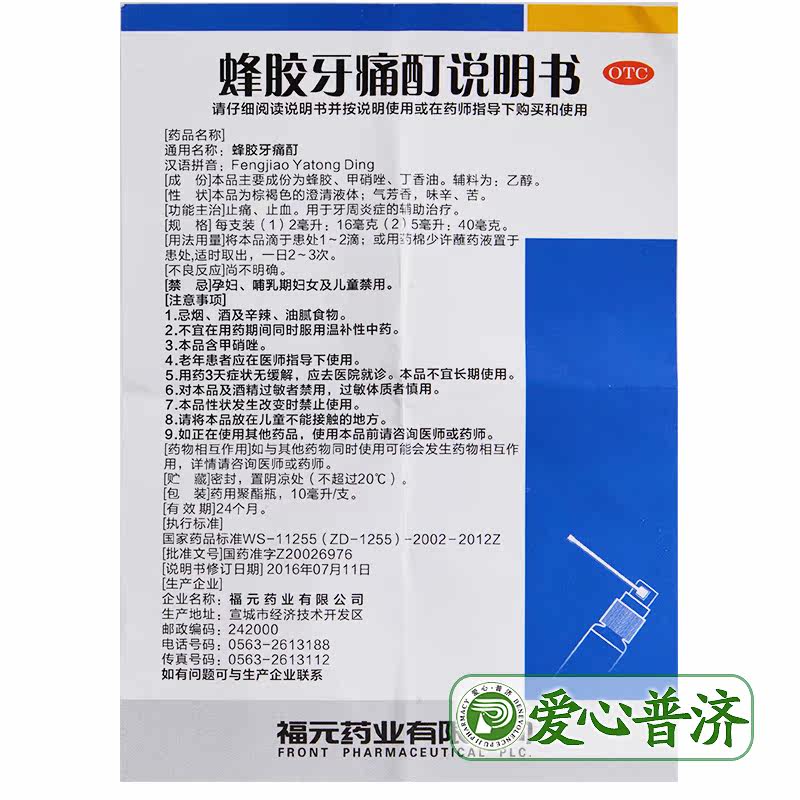 福元 Прополис зубная боль L 10 мл облегчение боли и гемостатическое воспаление пародонта