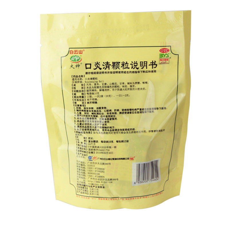 大神 Байюншанкункоу Частицы воспаления 10G*12 мешков инь, чистого тепла, детоксикации, отека, инь, виртуальный огонь, воспаление губной помады