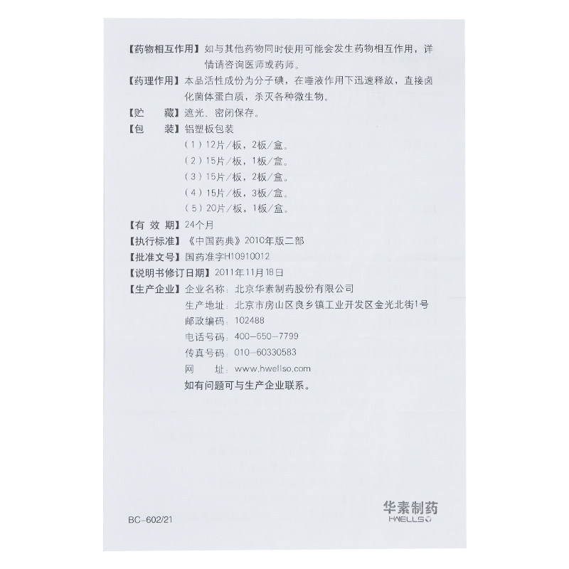 华素片 Западный йод таблетки 1,5 мг*15 таблетки/коробка хронический гингивит Хронический периодический периодический периодический