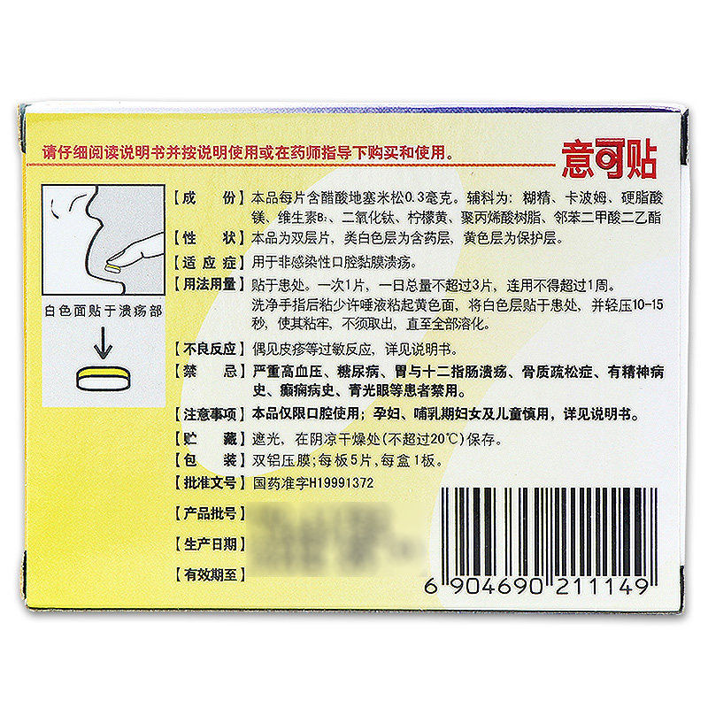 意可贴 5 таблеток на кусок/коробка уксусной кислоты сегемонической адгезионной таблетки для неинфекционных язв полости рта
