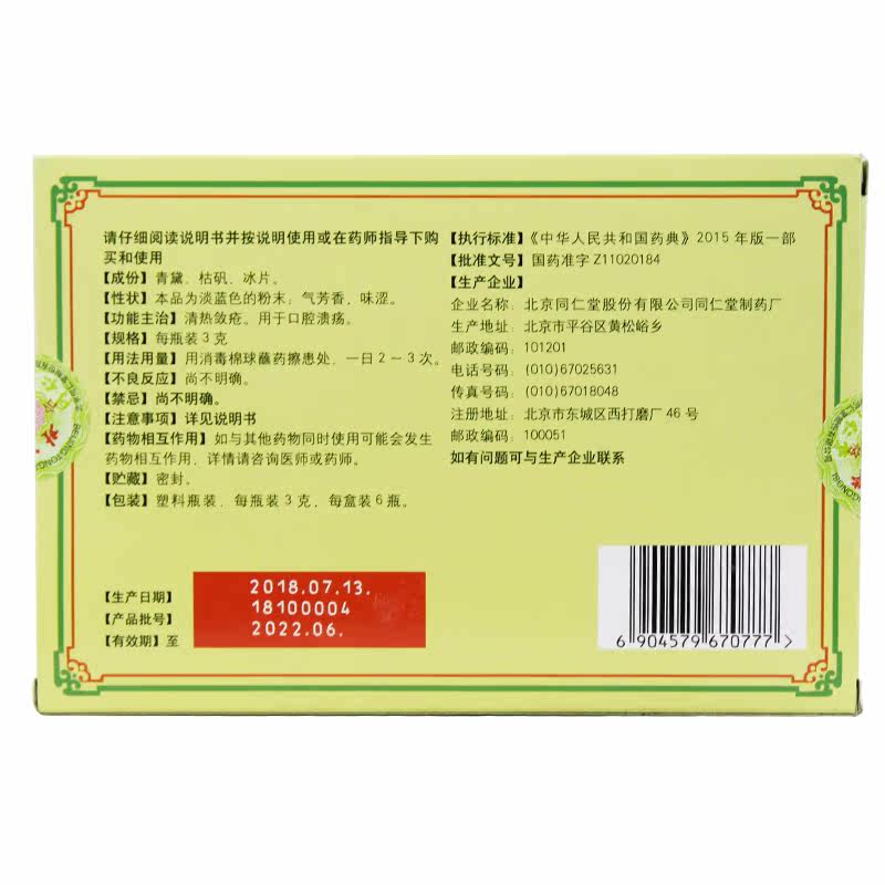 Пекин Тонгрентанг пероральная язва рассеян 3 грамма*6 бутылок/коробка