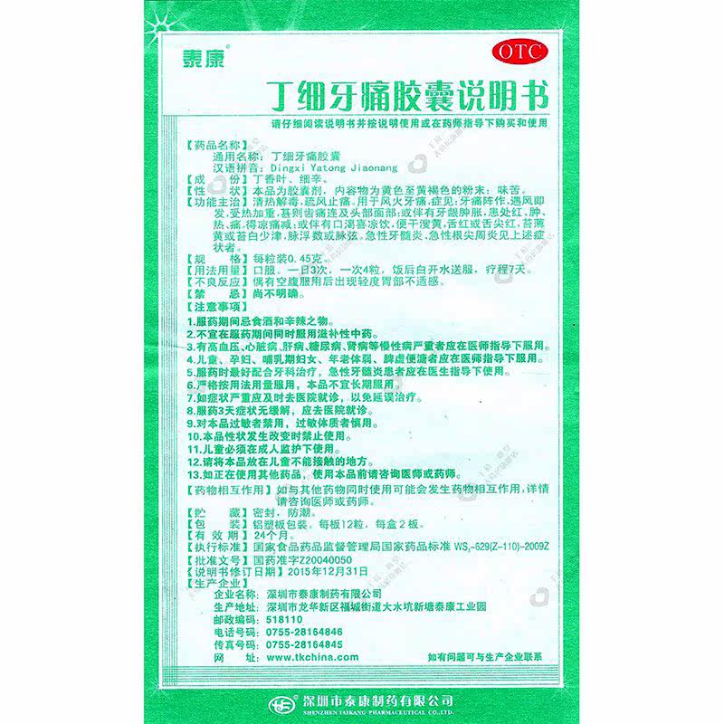 泰康 Капсула с тонкой зубной болью с тонкой зубной болью 24 зерна боли с огнем ветра, отек десворта, зуб корня, зуб