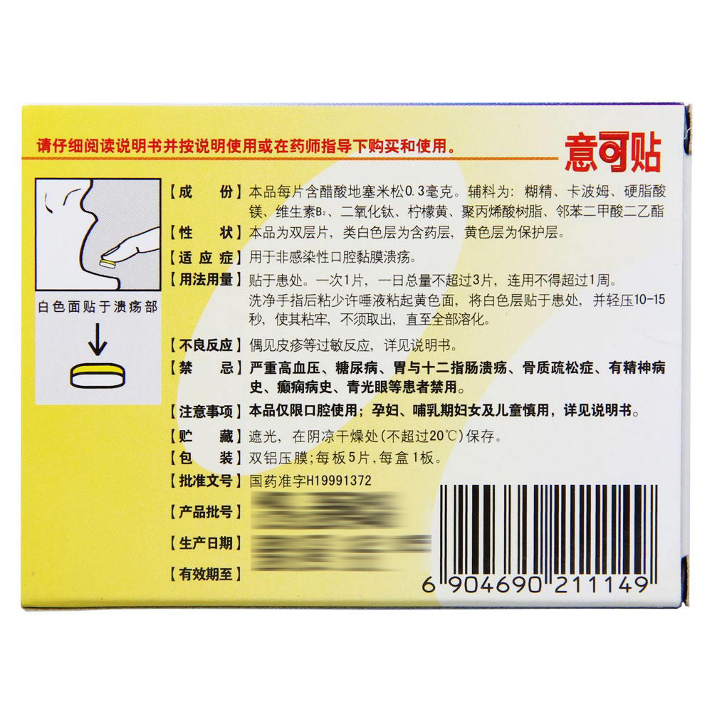 意可贴 Ситтозистная кислота дексаметазон Липкий пластырь 5 Таблетки пероральной язвы язвы перора