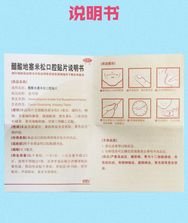 意可贴 Синдром может быть паста -ваксусная кислота Дексаметалисон Липкий Плач 0,3 мг*5 Таблетки/Коробка Остная слизистая оболочка язвы