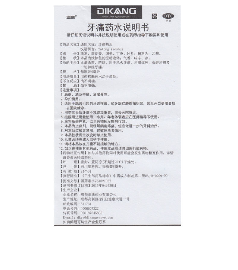 迪康 Зубная боль в зелье 5 мл1 бутылка/коробка облегчение боли, бактерицидные анти -мусорные десны, красная отек зубная боль