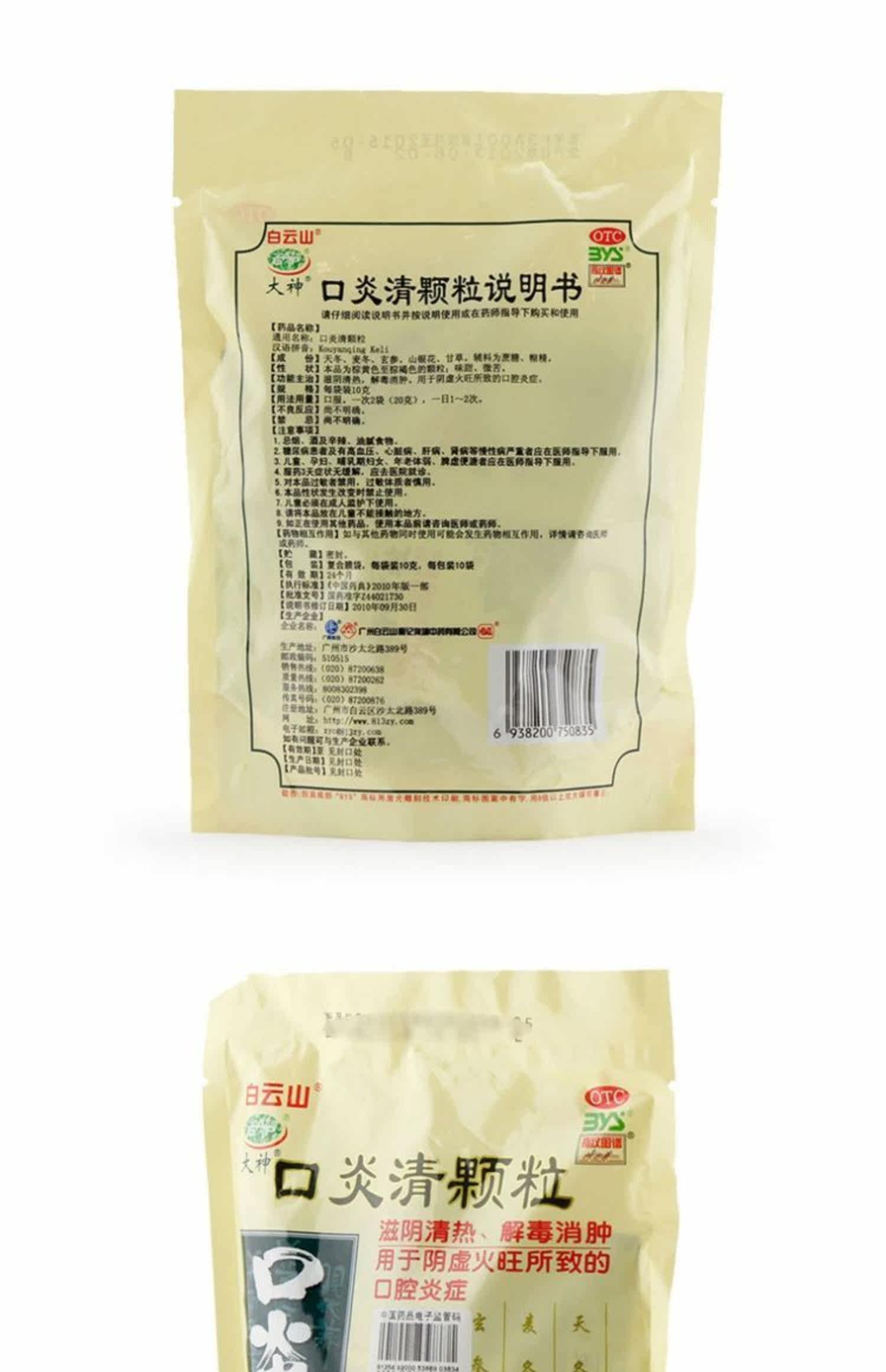 白云山 Воспаление во рту прозрачные частицы 10 пакетов тепла и детоксифицирующих десен, отек, боль, акцент воспалительный пероральный язвен против гнездота против воспалительного воспаления