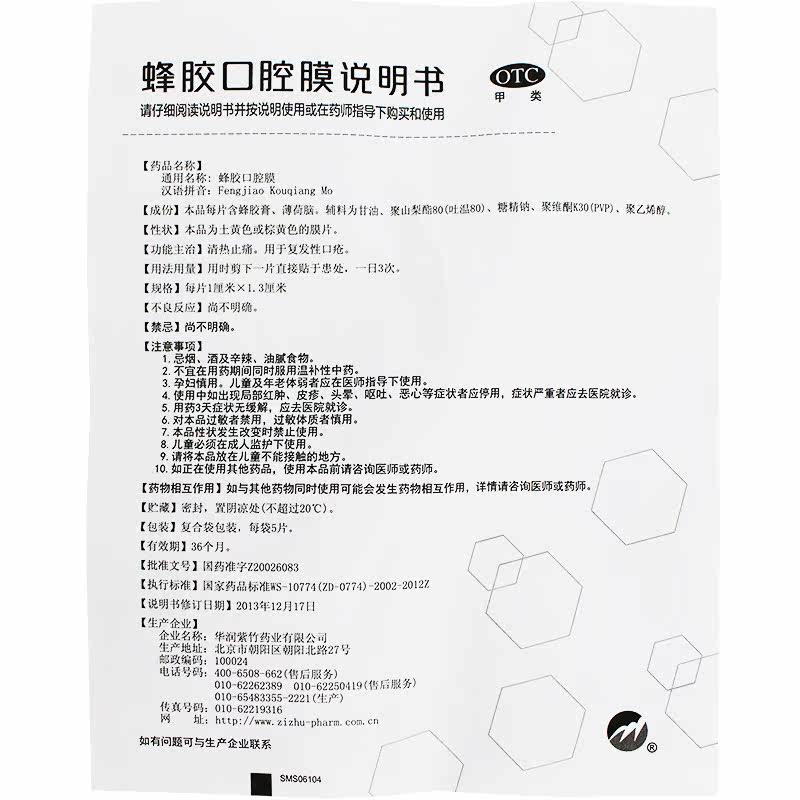 紫竹 Jolis Oral Membrane 20 Таблетки прозрачная тепло очищение боли рецидив красноречивых ранов