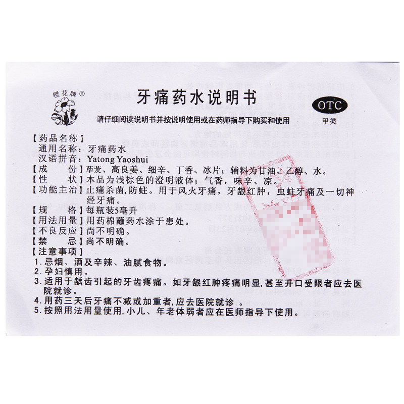 樱花 Зубная боль в зелье 5 мл анальгезия, бактерицидная анти -кавивочность, огонь ветра, боли в зубах, боли набухания десен, боли в зубах, зубная боль, боль в нерв, нервную боль