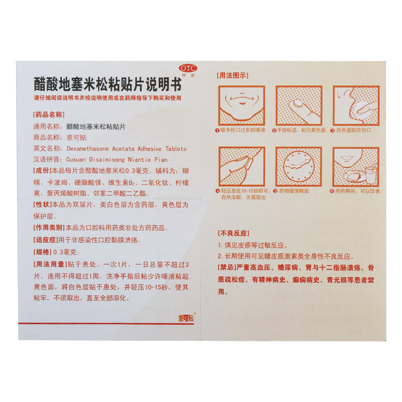 意可贴 Ситтозистная кислота дексаметазон липкий пластырь 0,3 мг*5 язва слизистой оболочки таблеток