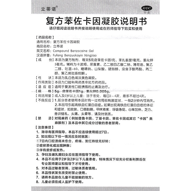 立蒂诺 Составной бензозакин гель 5G*1 Поддержка/рецидив коробки