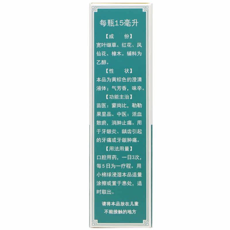 Тонгджи Тан Фуфанг Клык Клык Клык 15 мл гингивалтита кариеса Каинбитивная боль для отек десен, плакат зубной боли Пост -антипопулярный анти -турбидный щупажный лечение
