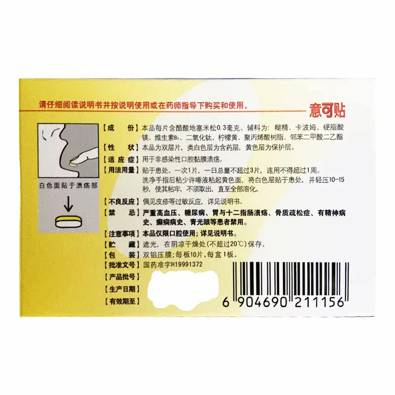 意可贴 10 таблеток пероральной язвенной наклеек в сихалидицине сезулиновой кислоты, инфицированные инфекционными язвами слизистой оболочки полости рта