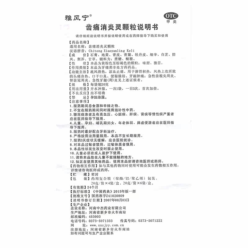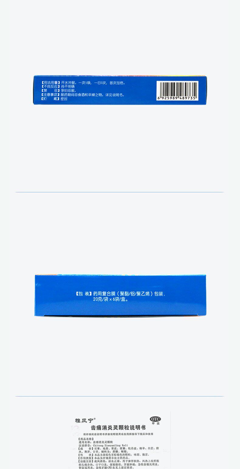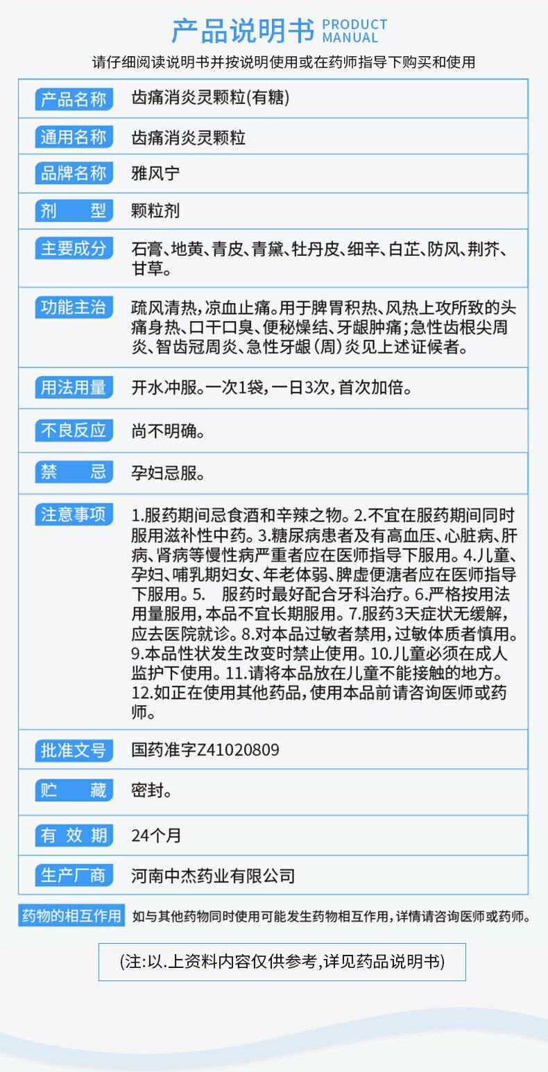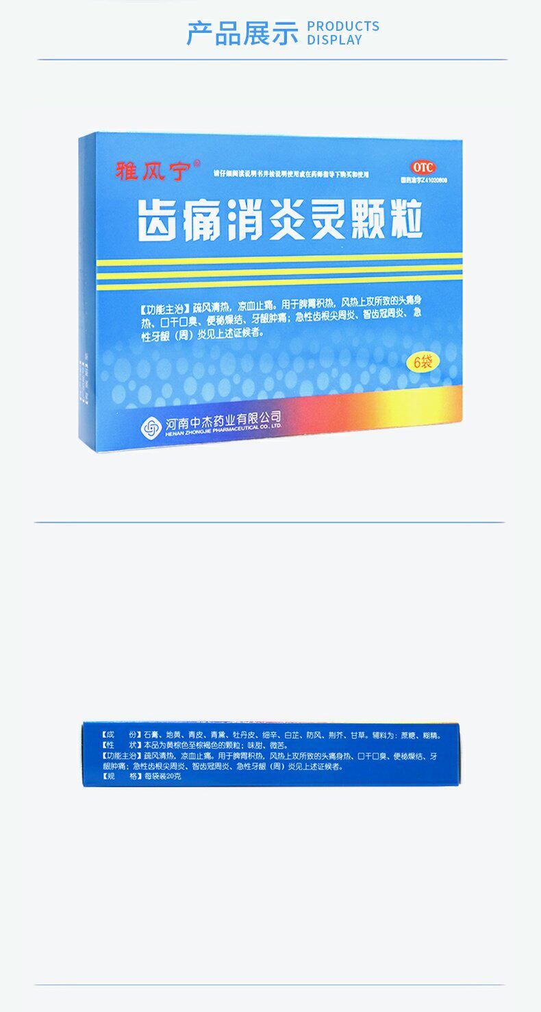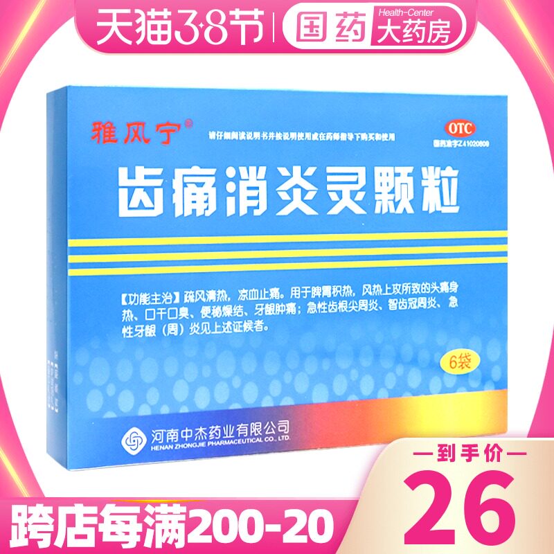 雅风宁 Зубная боль и анти -инфляционные частицы 20 г*6 мешков/коробка диахрий, запор, сухость, боли в зубах, отек для десен головная боль