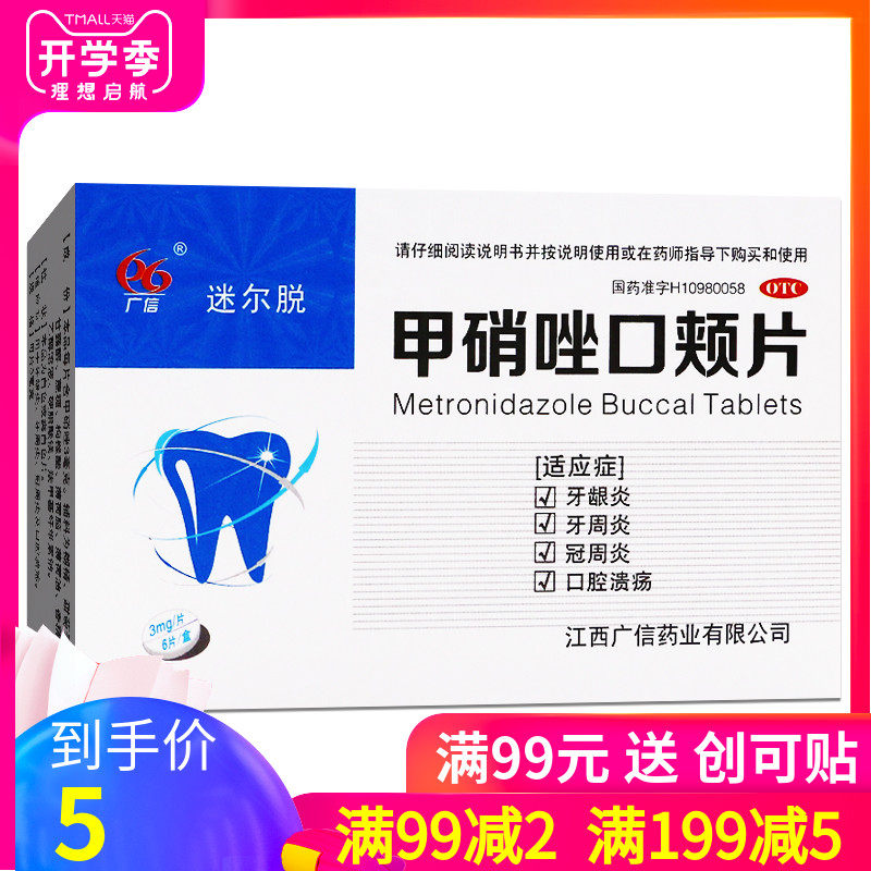 广信 Метронидазол рта щеки (MIMI) 6 Таблетки гингивита Тузет Пероонтит Оральная язва Корона "OTC