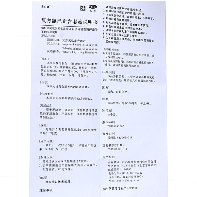 Jinkou xinfang chlorine jie dingjin содержит 300 мл рта, стерилизатора, анти -инфляторного и пародонтального гингивита гингивит пероральный язва
