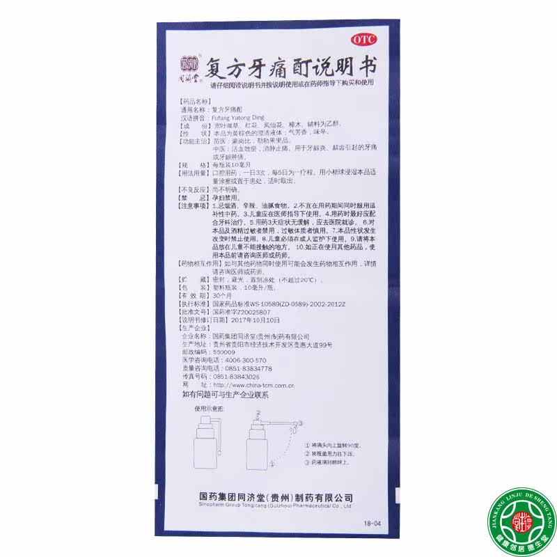 同济堂 Сложная зубная боль 酊 10 мл*1 бутылка/коробка гематопоэтического стазиса крови и стазиса, отеки, боль и облегчение боли и облегчения гингивита