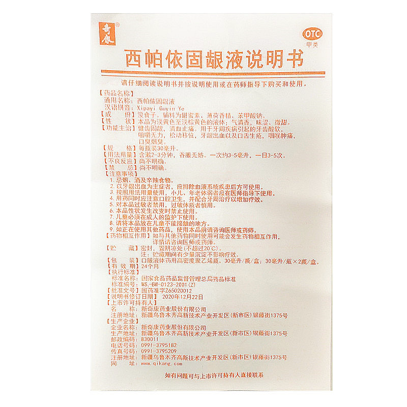 Qikonsipayigu Gingival Fluid Fluid Fluid 30 мл*2 бутылки 60 мл кровотечения для зубов