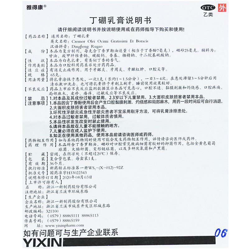 雅得康 Ding Boron Cream Authentic 65G*1 Зубная паста десен пародонта-патоматит RZY Обухание и боли противовоспалительная боль.