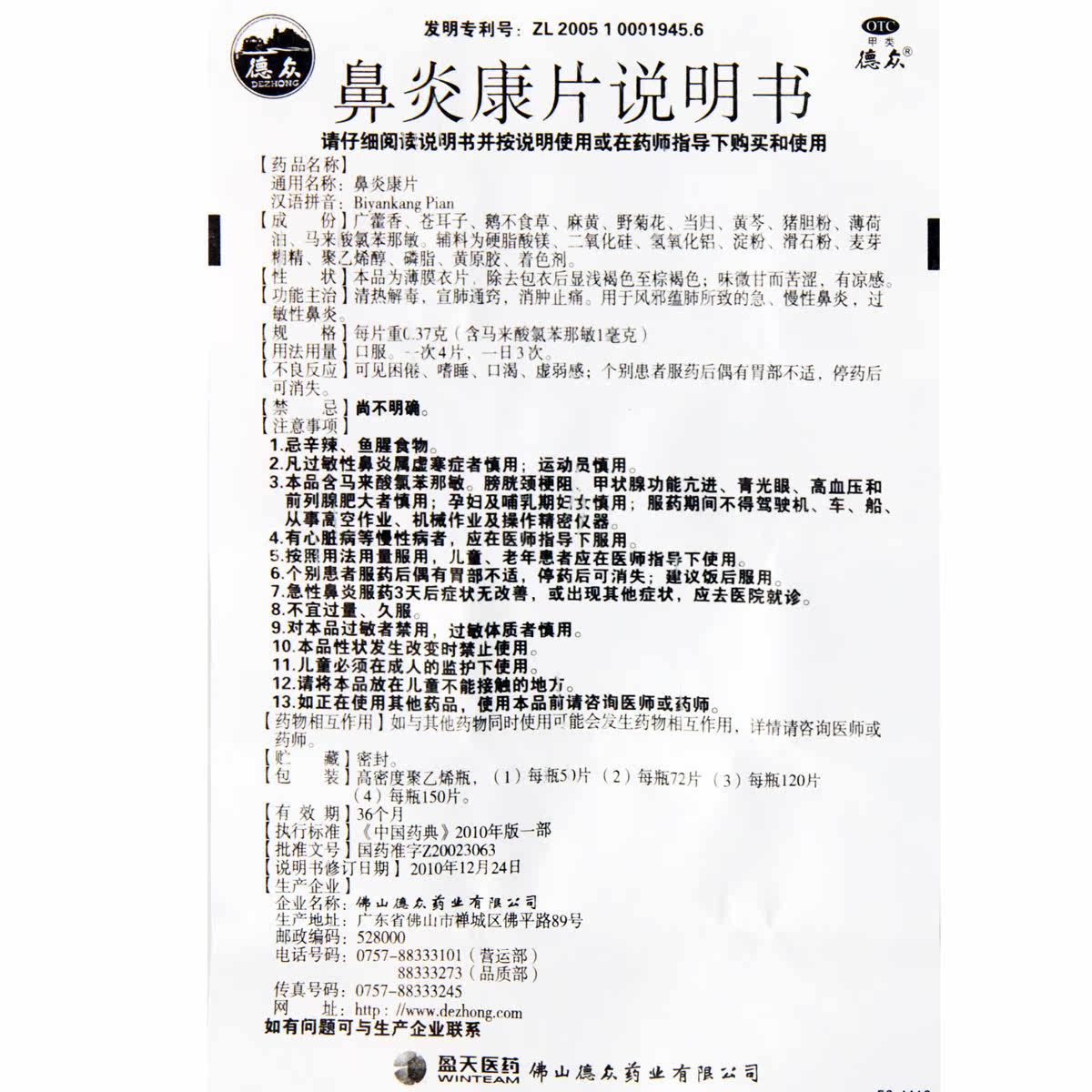 德众 Ринит пленка Kang 72 Таблетки прозрачная тепло и детоксикация, флагман хронический аллергический ринит хранилище