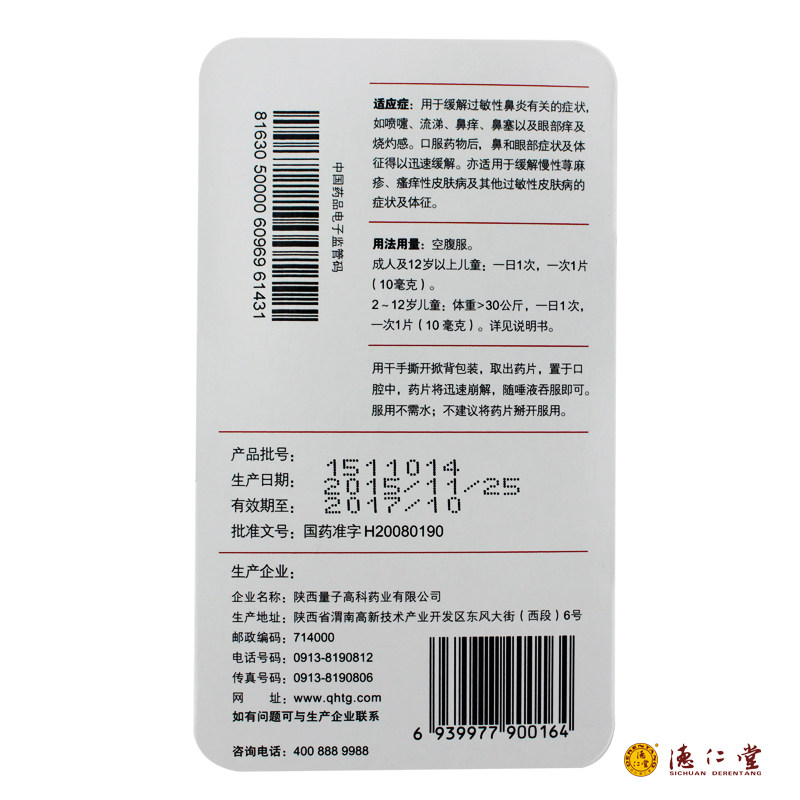 息斯敏 Chrothered Roth Ratch Crash 10 мг*10 таблеток/коробка
