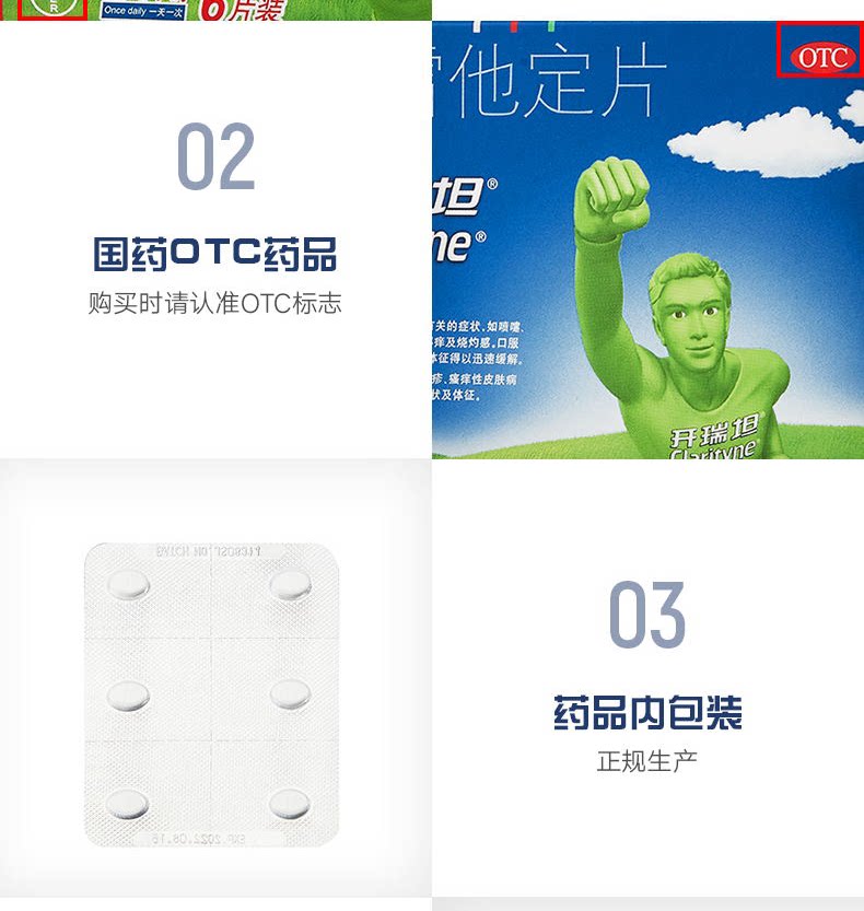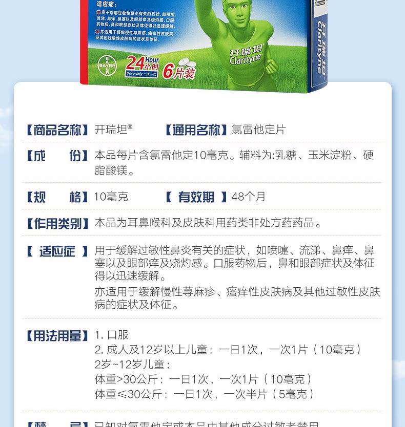 开瑞坦 Clotheraz, 6 кусочков антиаллергического лекарственного препарата Аллергическое ринит крапивное покрытие носового носа.