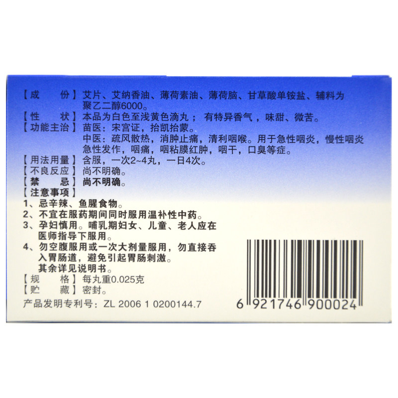 艾纳香 Платинизм освежает, Di Таблетки 72 таблетки таблетки, боль в боли против лапейна, лосось Цинли и лосось горло, хроническая глоточная глотка сухое горло