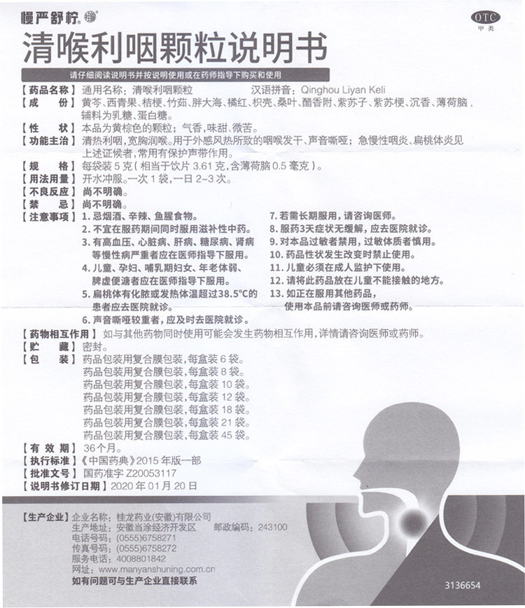 Y медленное ясное ясное горло Дворец Гранулы 18 пакетов с защитными звуковыми полосами Острый хронический фарингит Тонсиллит, сухое горло, тупой