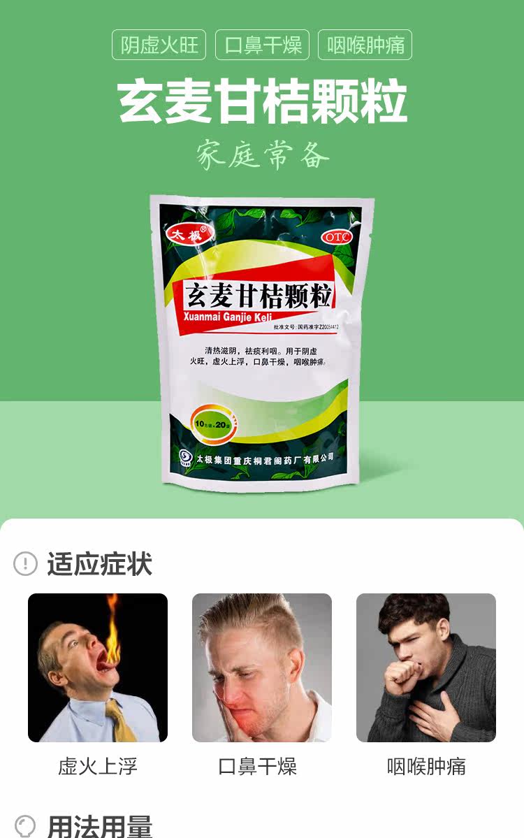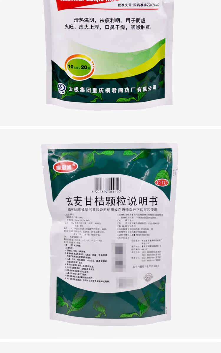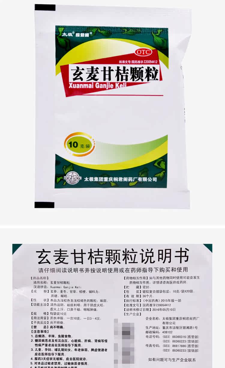 Скюанмай Гантан Гранулы прозрачный тепло Тайцзи 20 мешков горла и боли хронический фарингит, отхаркивающие и кашлевые частицы