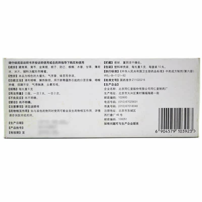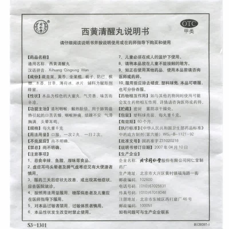 同仁堂 Xihuang Xingxing таблетки 6G*10 таблетки/коробка прозрачное горло, горло, облегчение тепла, раздражающая раздражительность