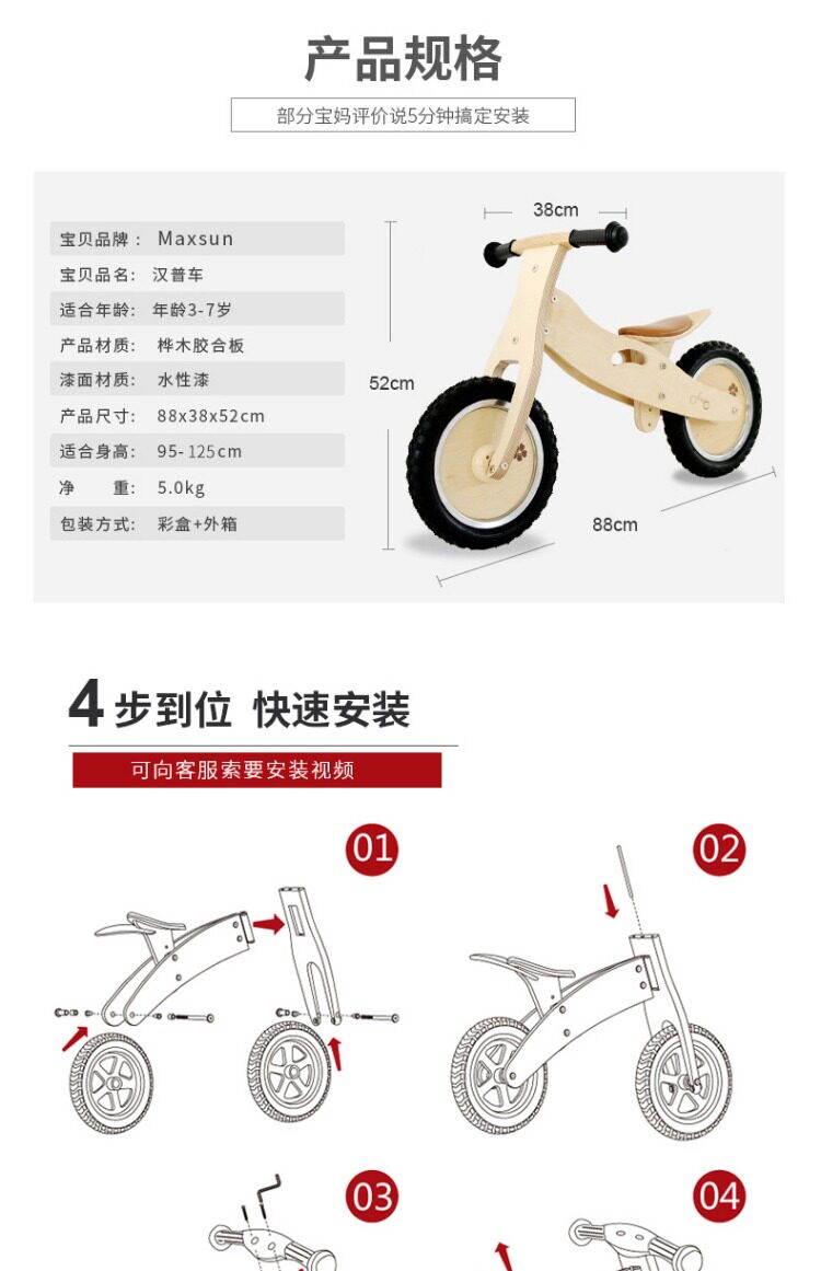 Детский беговел, деревянные ходунки, 1-3-6 лет