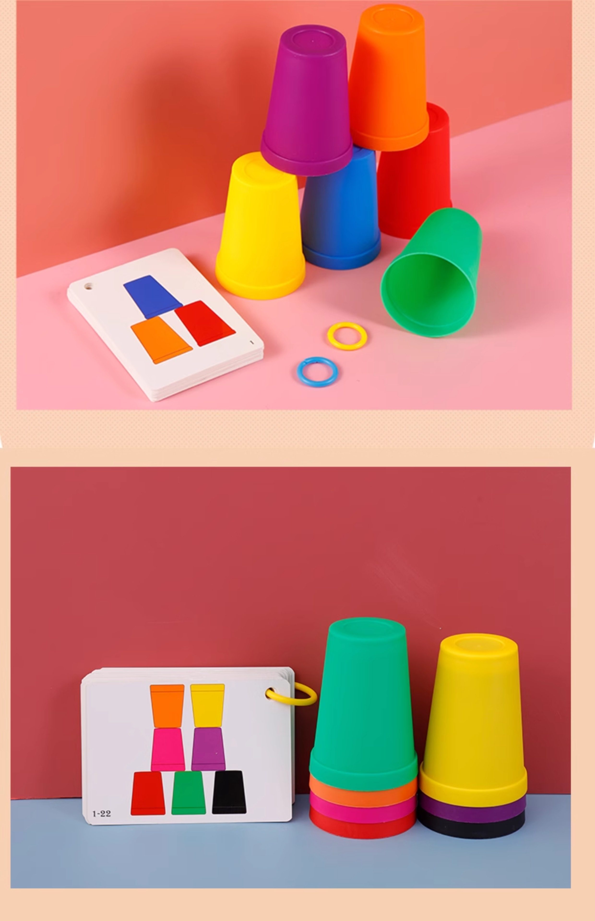 Познавательная башенка Монтессори, карточки для детского сада, игрушка, раннее развитие, цветовое восприятие, младшая группа, концентрация внимания, обучающая игрушка