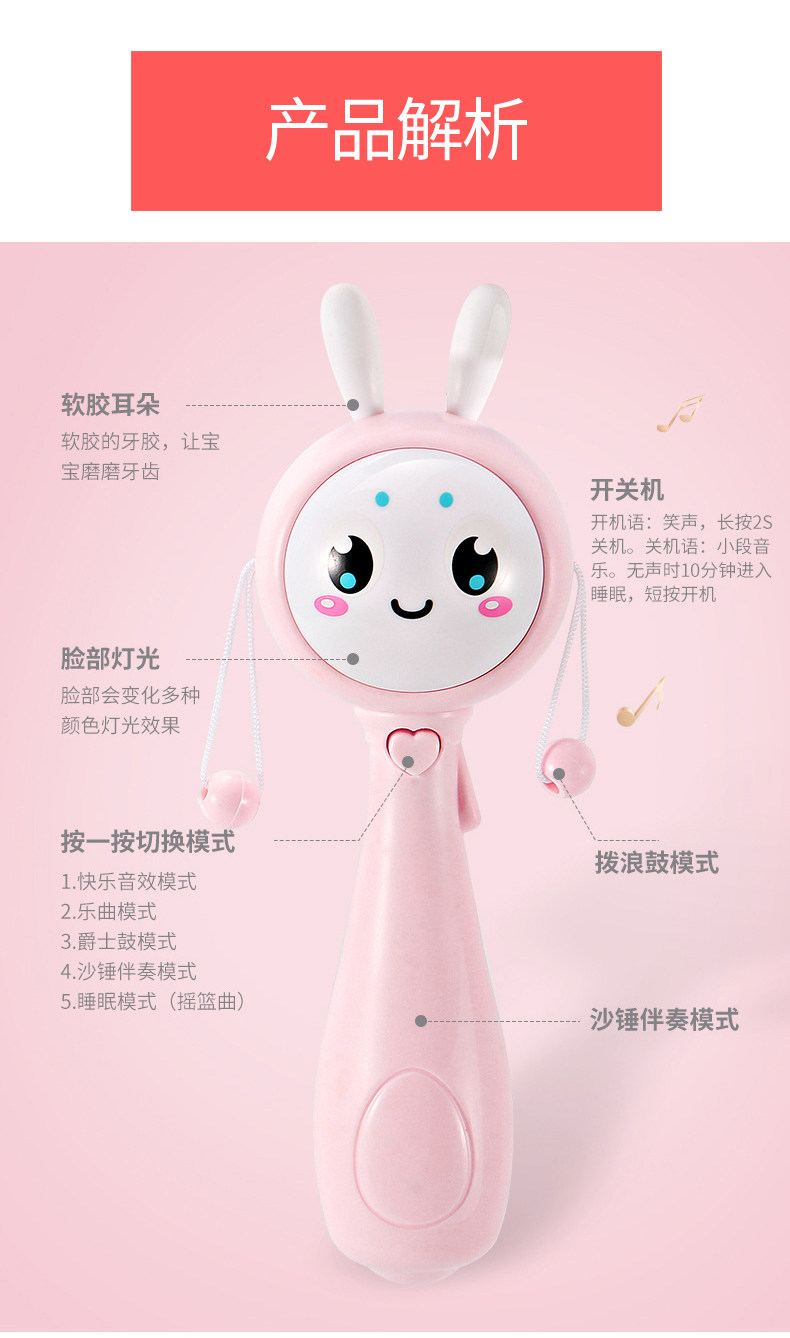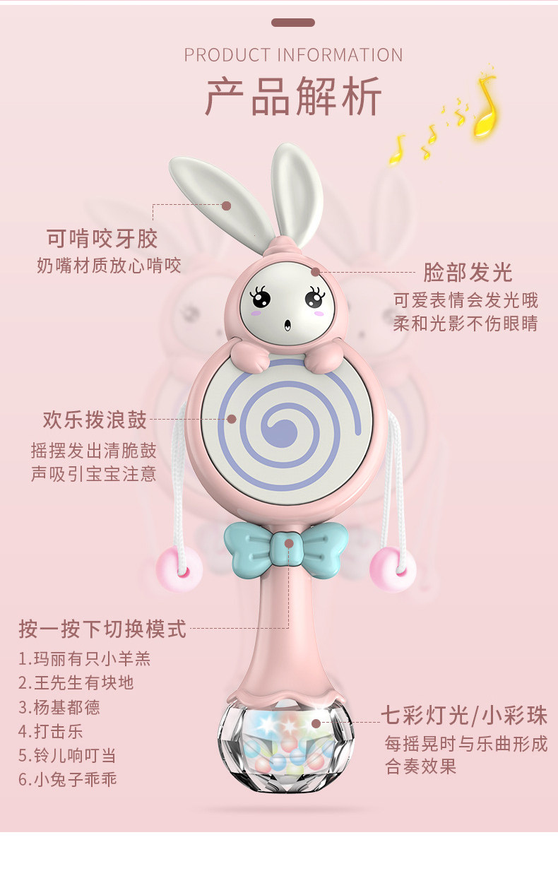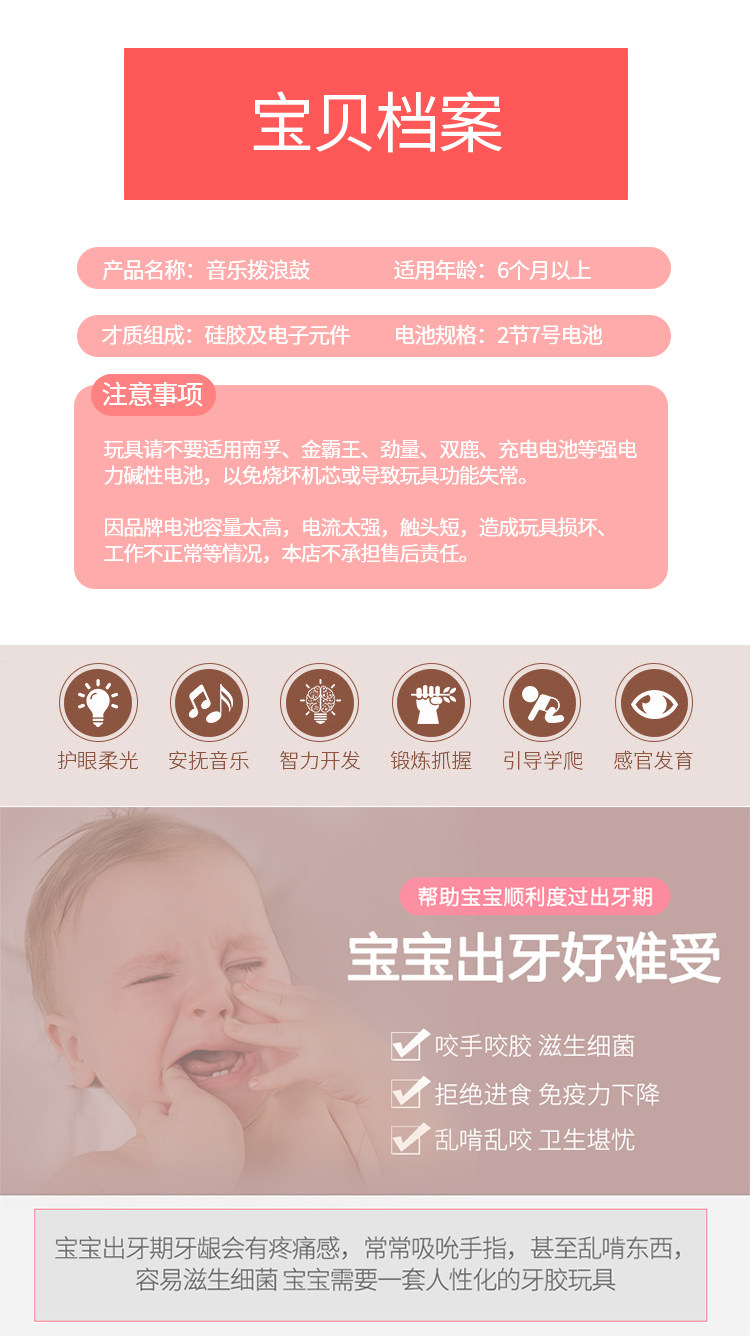 Погремушка, игрушка, музыкальный барабан-качалка, можно грызть, 3-6 мес.