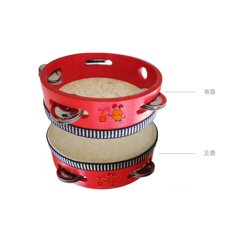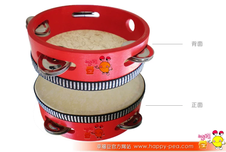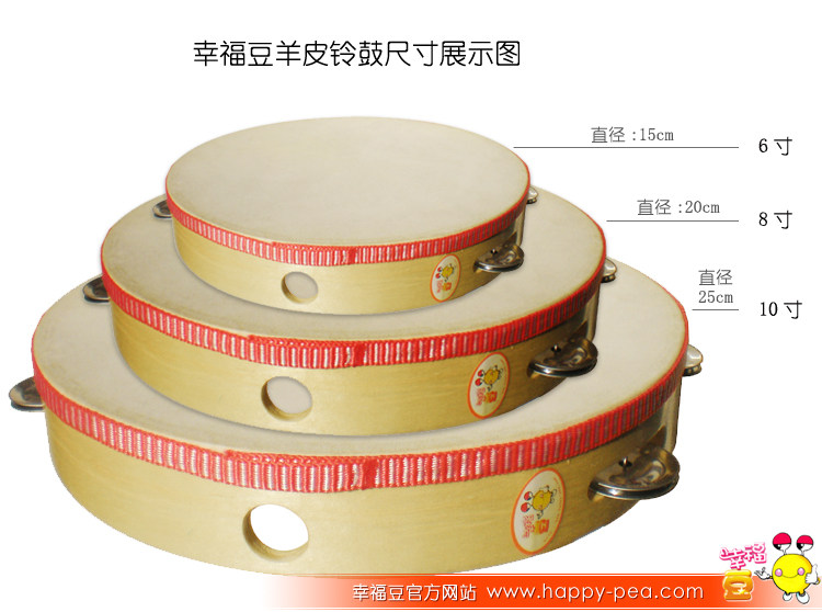 [幸福豆:奥尔夫乐器原色铃鼓,6寸羊皮手铃鼓,原色花铃鼓,4铃手鼓]