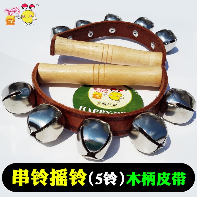 Счастье фасоль: Ольф инструмент 5 колоколов, деревянная ручка танца по поясу, держащий колокольчик, детский скелетный колокольчик сингл