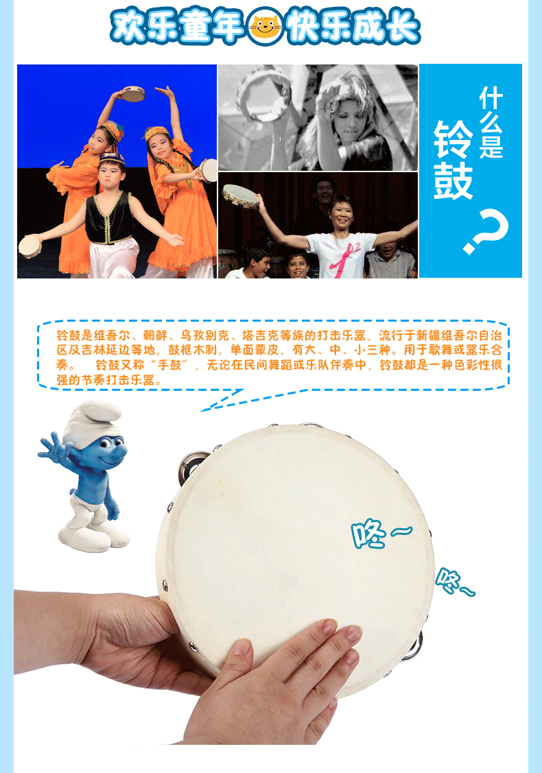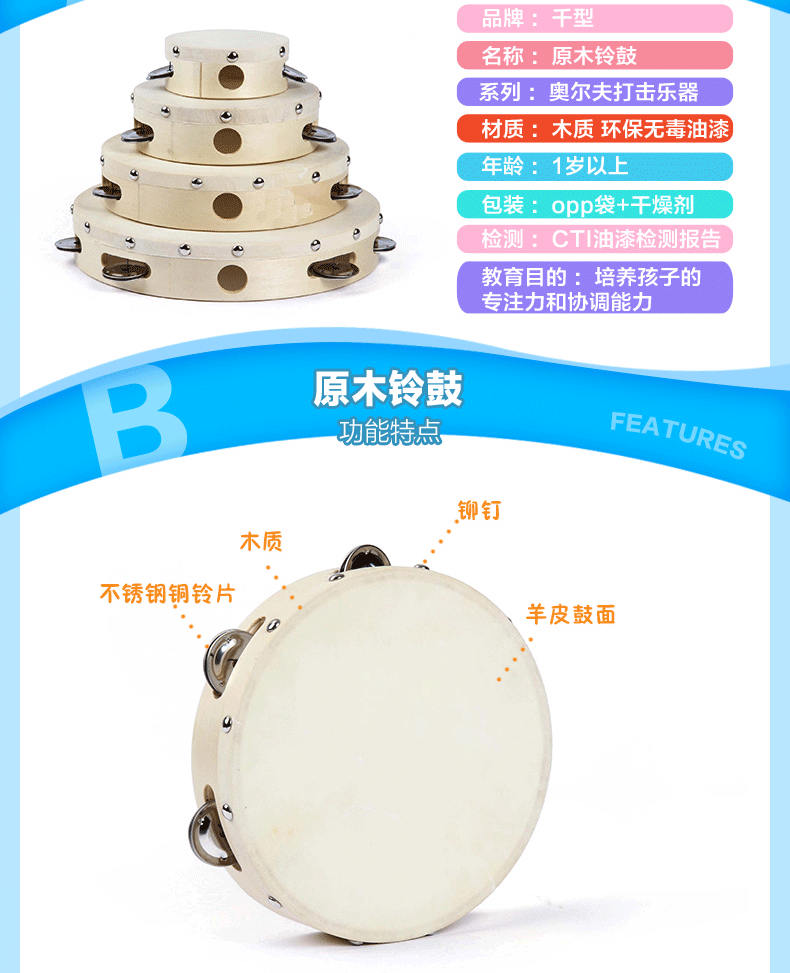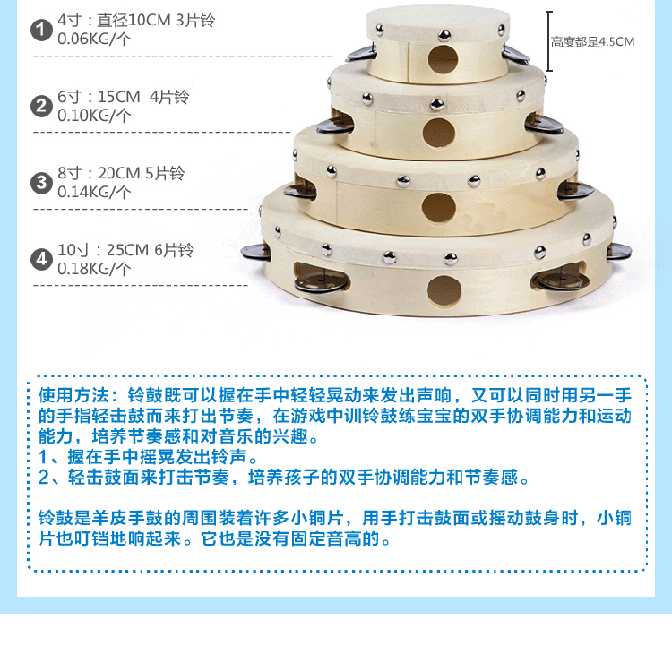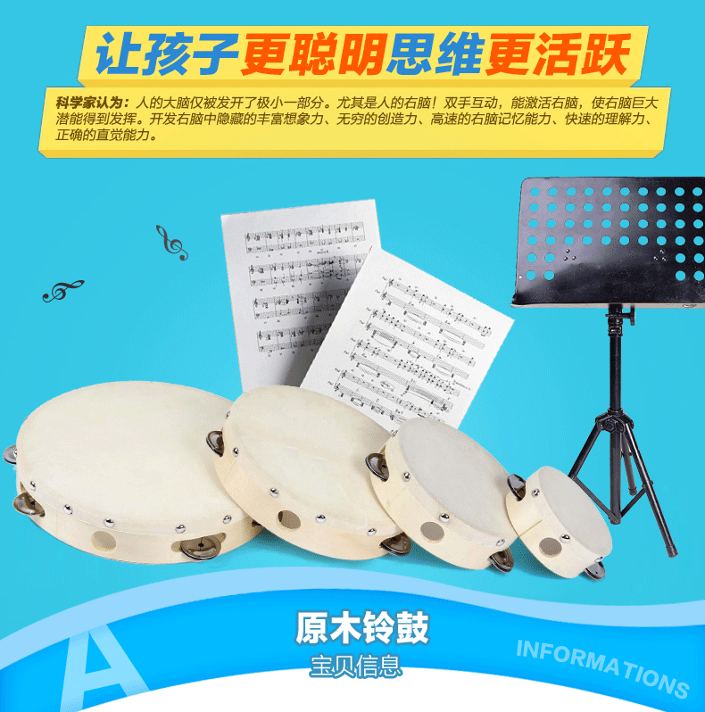 Ударные инструменты, учебные пособия по музыке, детский бубен, раннее развитие, 0-6 лет, 10 дюймов