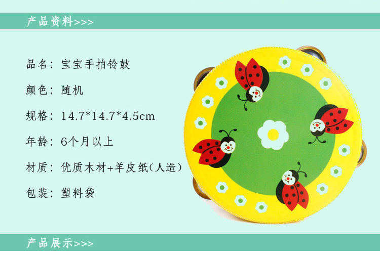 Детские учебные пособия по музыке, ударные инструменты, хваталка для младенца, барабан, бубен, 0-6 лет, семейный стиль, раннее развитие, 6 дюймов