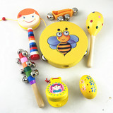 Деревянный мультяшный бубен, погремушка, детский гаечный ключ, детские ударные инструменты, игрушка