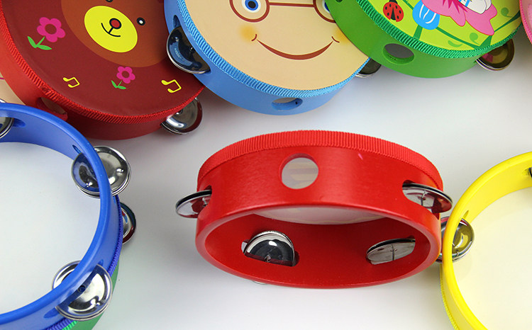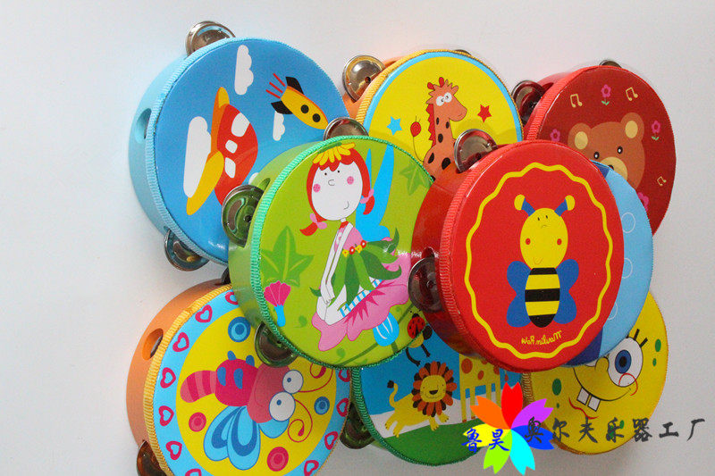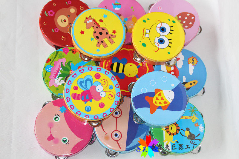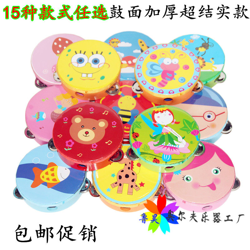 Погремушка для детского сада, бубен из овчины, ударные инструменты, мультяшный барабан, колокольчик