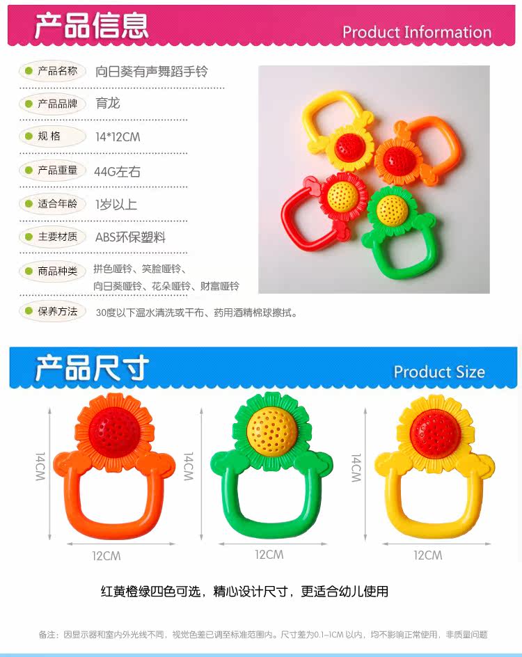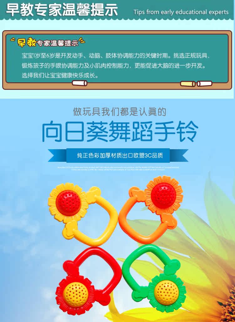 Гимнастические пластиковые гантели для детского сада, погремушка, подсолнух