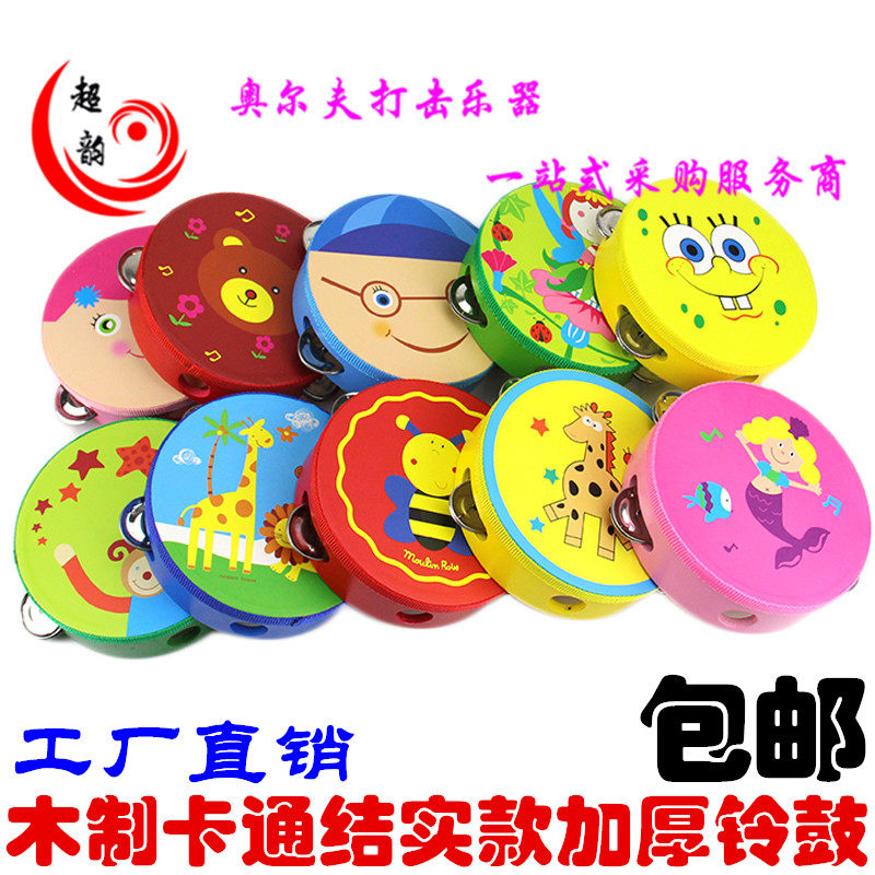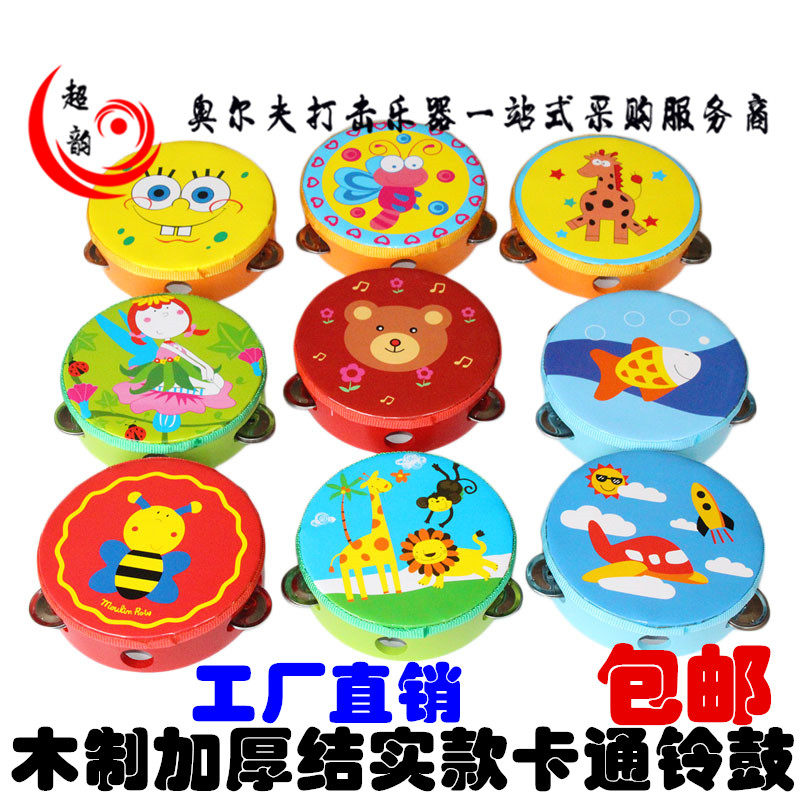 Деревянный мультяшный бубен для детского сада, большой барабан, барабан-качалка