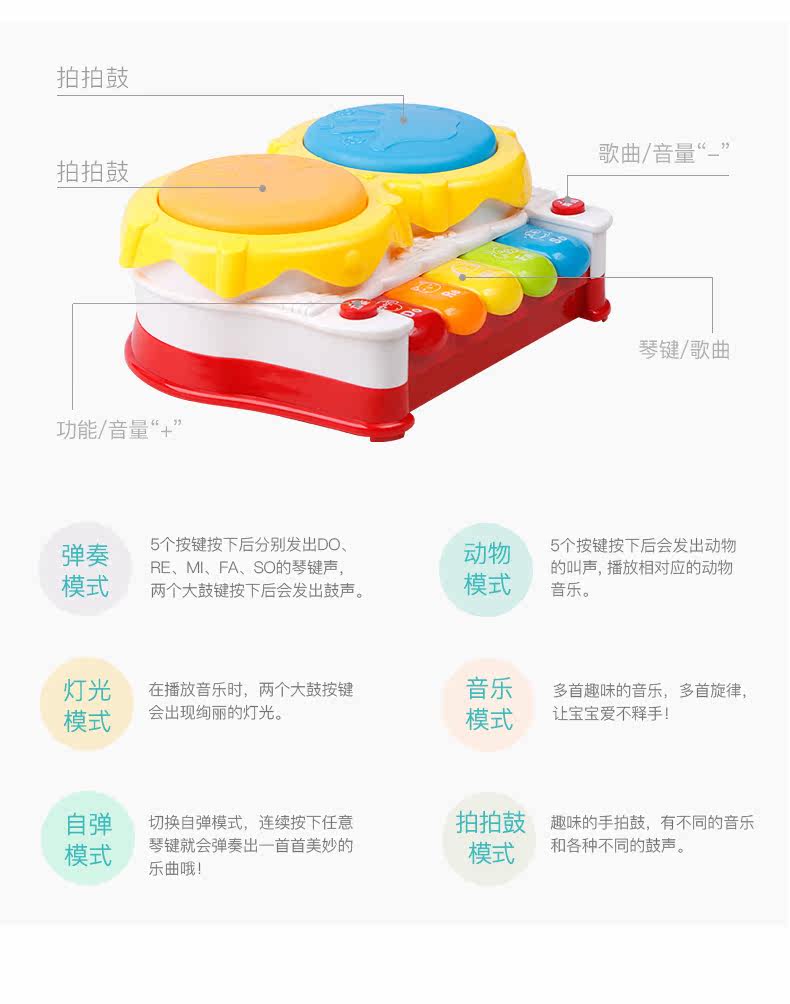 Электрический барабан, музыкальная игрушка, 0-1 лет, 6-12 мес.