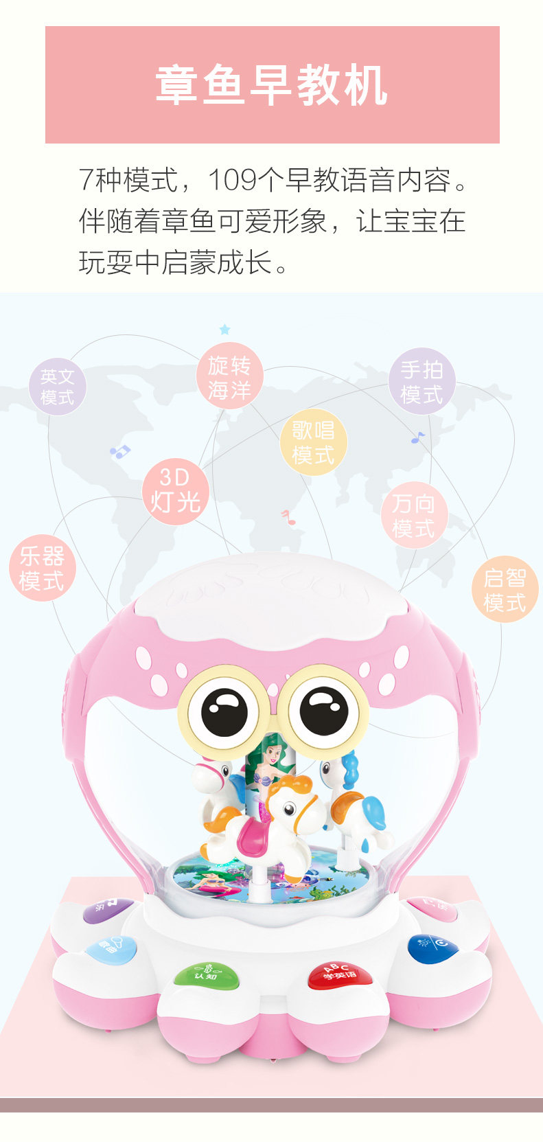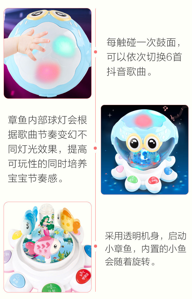 Игрушка, барабан, раннее развитие, осьминог, 6-12 мес., 1-3 лет
