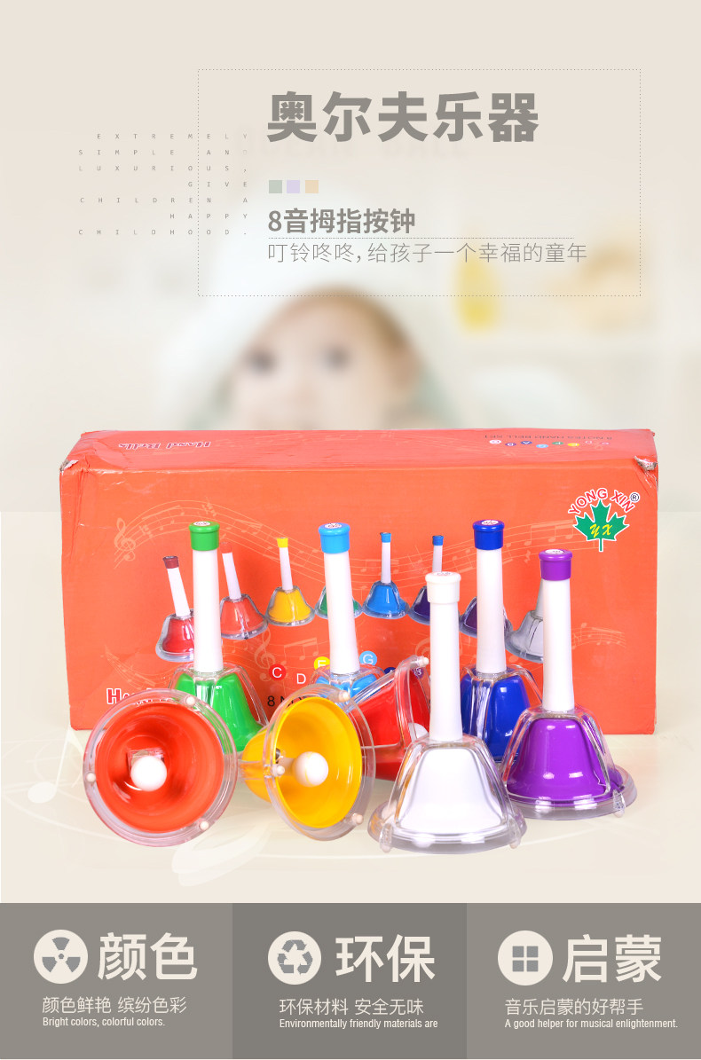 Детский ударный инструмент для детей восьми -тонал прикоснулся к колоколу, восемь мелодий, восемь звуков, троганный колокол