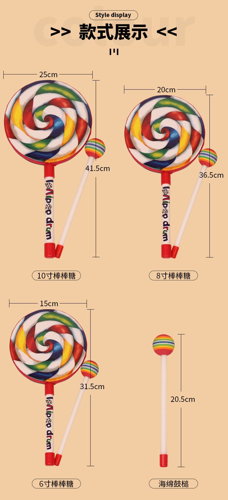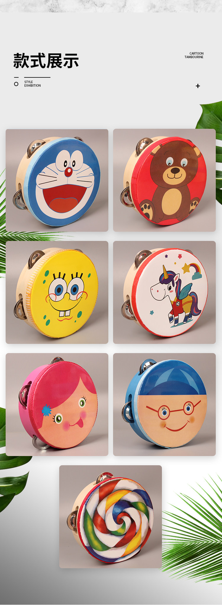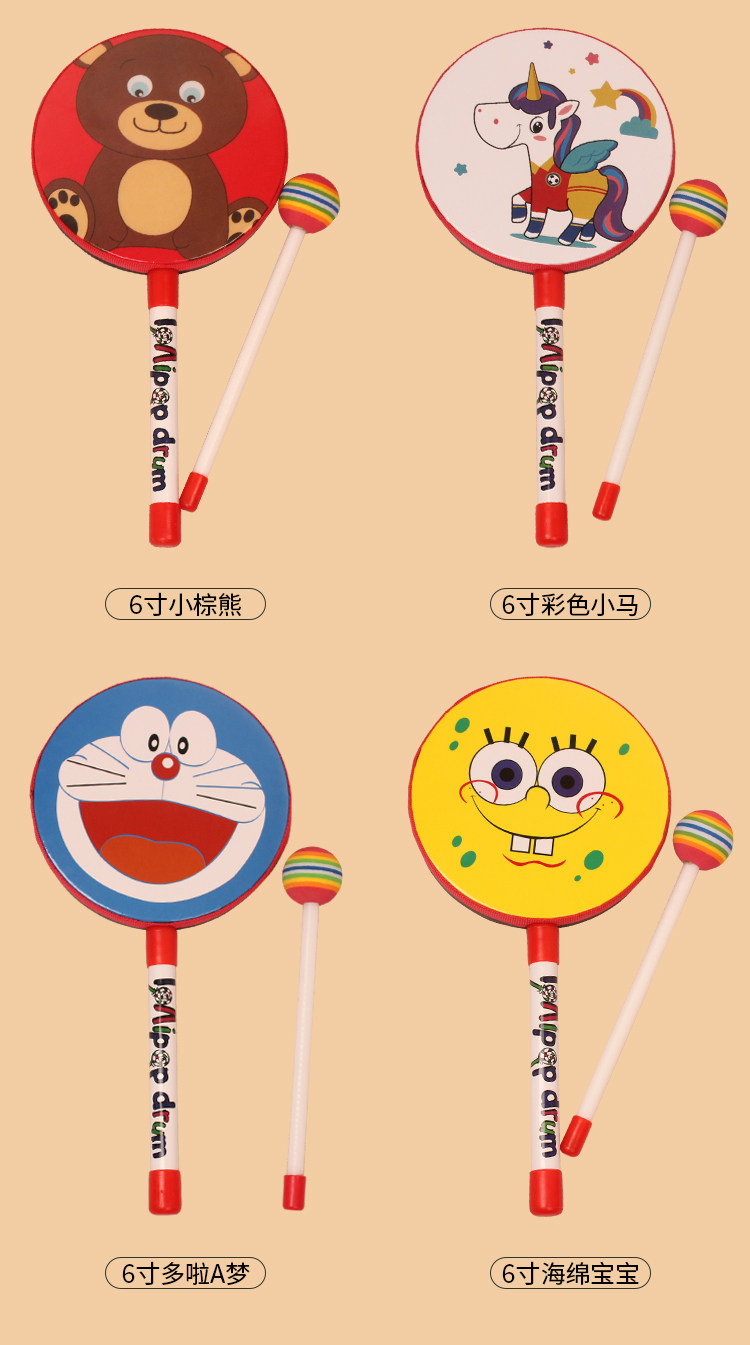 Мультяшная игрушка, бубен, барабан, погремушка, ударные инструменты, 6 дюймовая, 8 дюймов