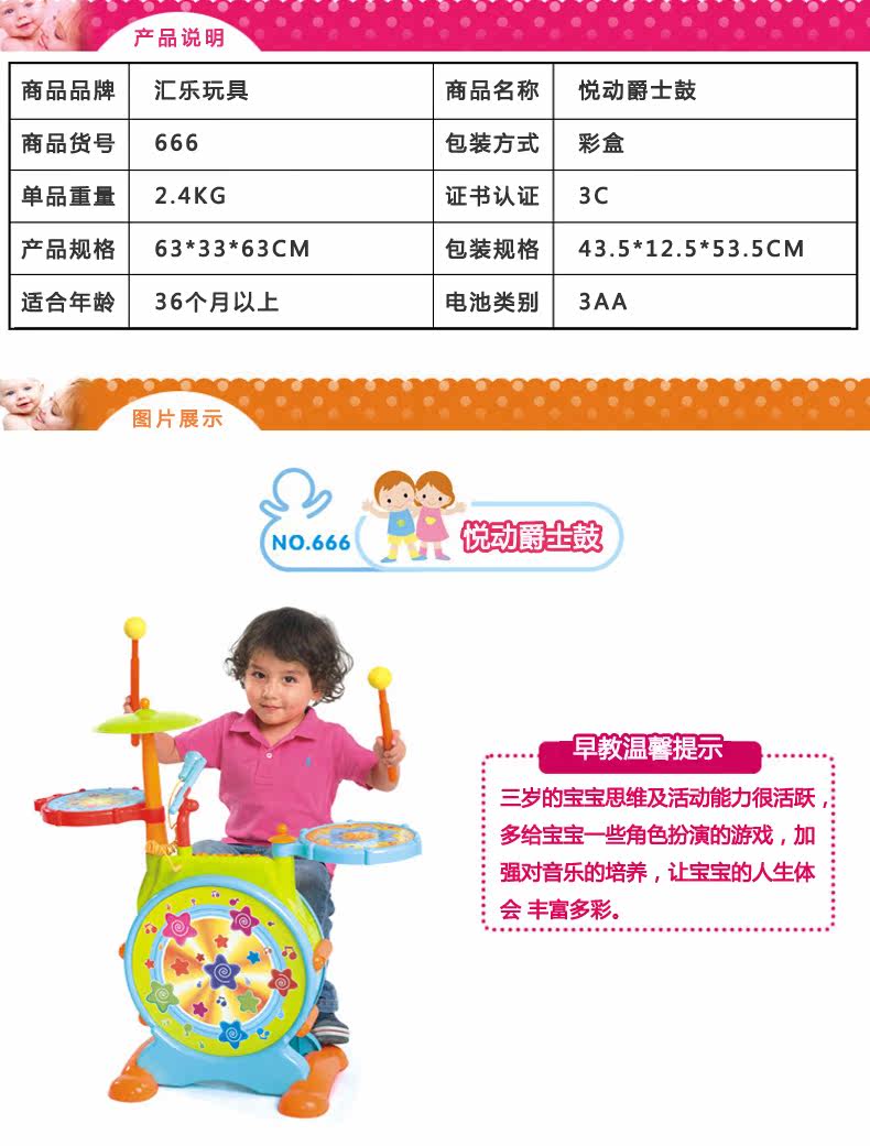 Игрушка, большие электронные барабаны, музыкальные музыкальные инструменты, раннее развитие
